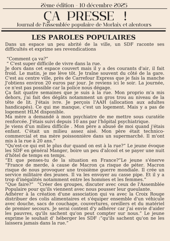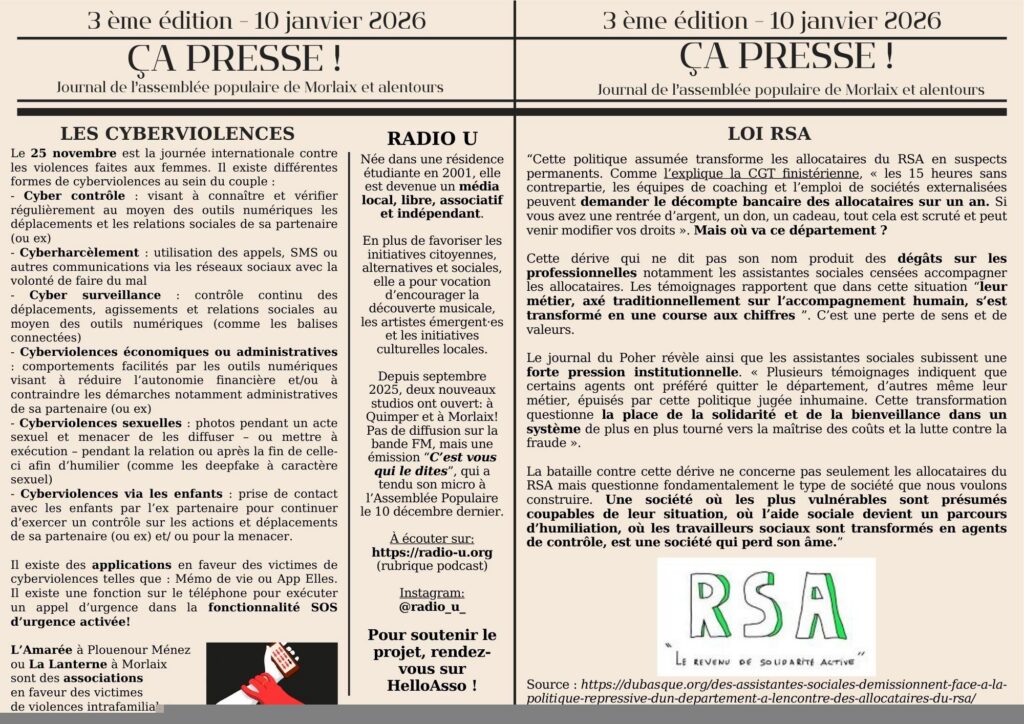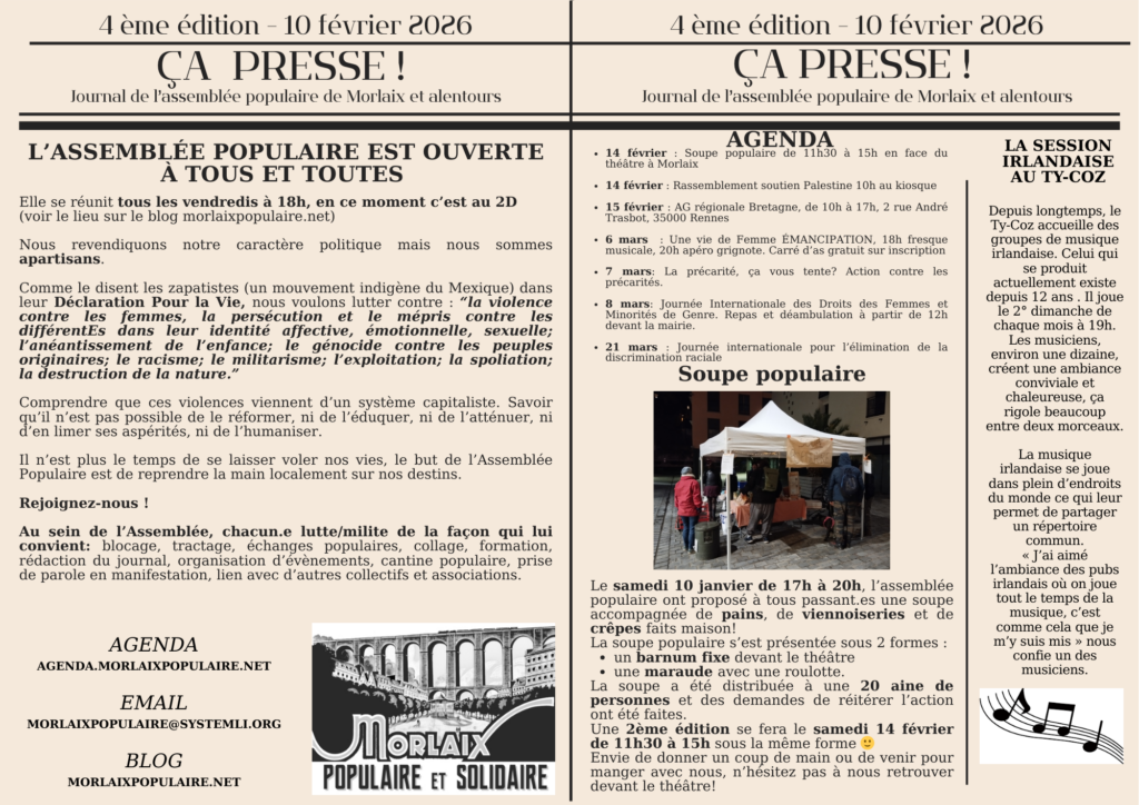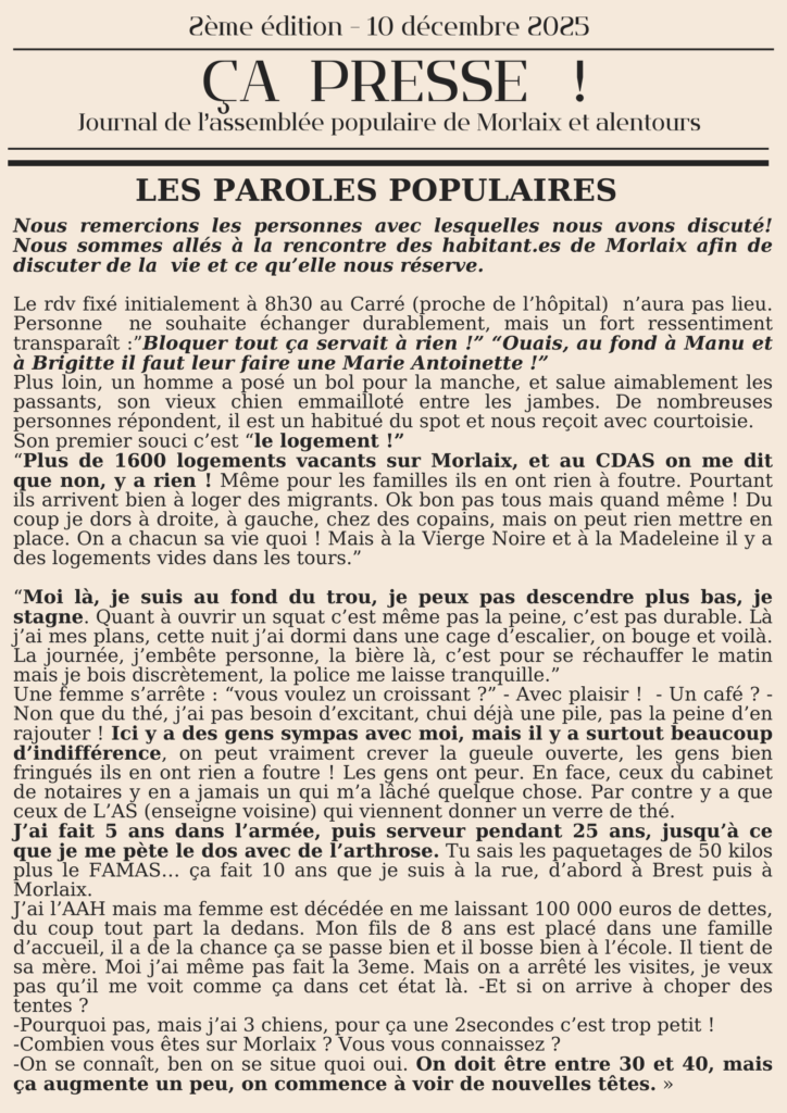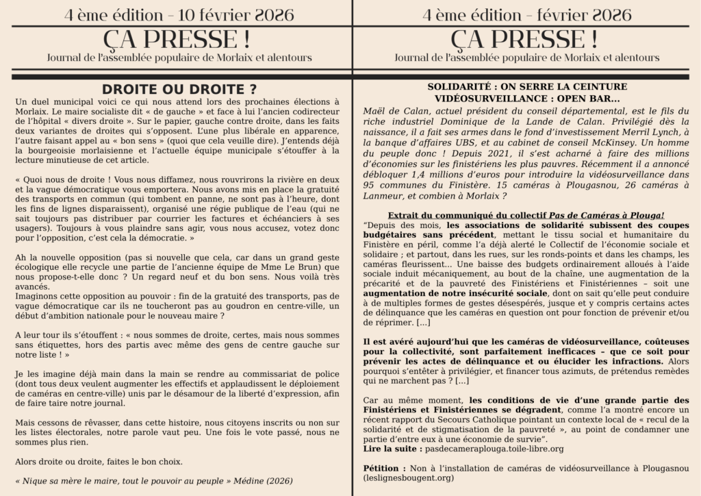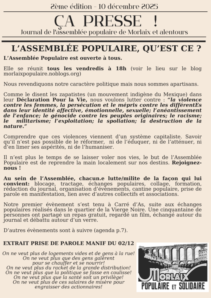 Le journal de l’Assemblée Populaire de Morlaix Ça Presse! est issu du mouvement BloquonsTout/Indignons-Nous.